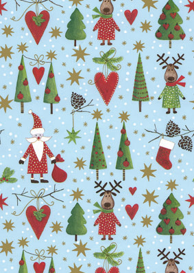 25 Bogen 70cmx100cm 70g/qm Bäumchen/Sterne Grund blau