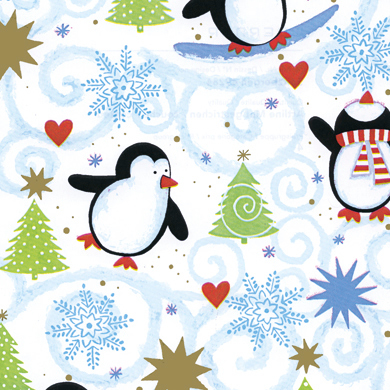 25 Bogen 70cmx100cm 70g/qm Pinguine Sterne Grund hellblau