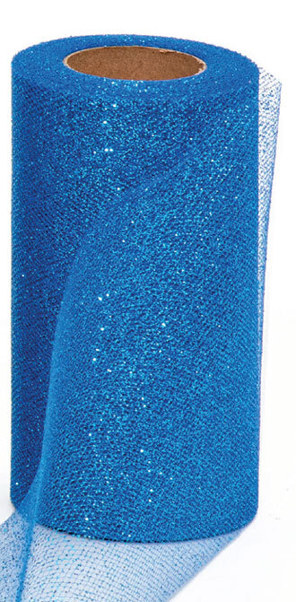 Glitter Tüllband fein 125mm/100m royal
