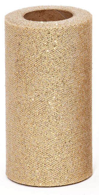 Glitter Tüllband fein 125mm/100m ecru/gold